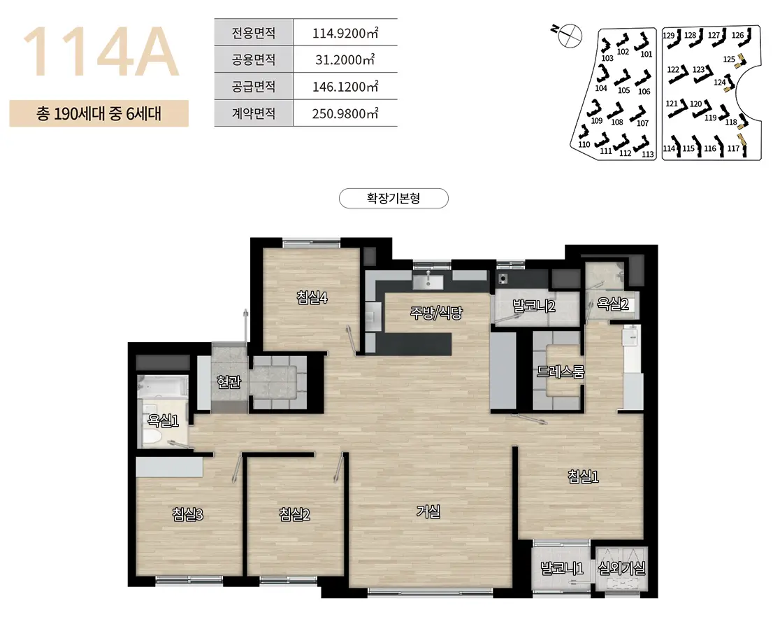 114A타입은 총 190세대로 이중 일반공급 6세대에 대해 청약을 진행합니다.