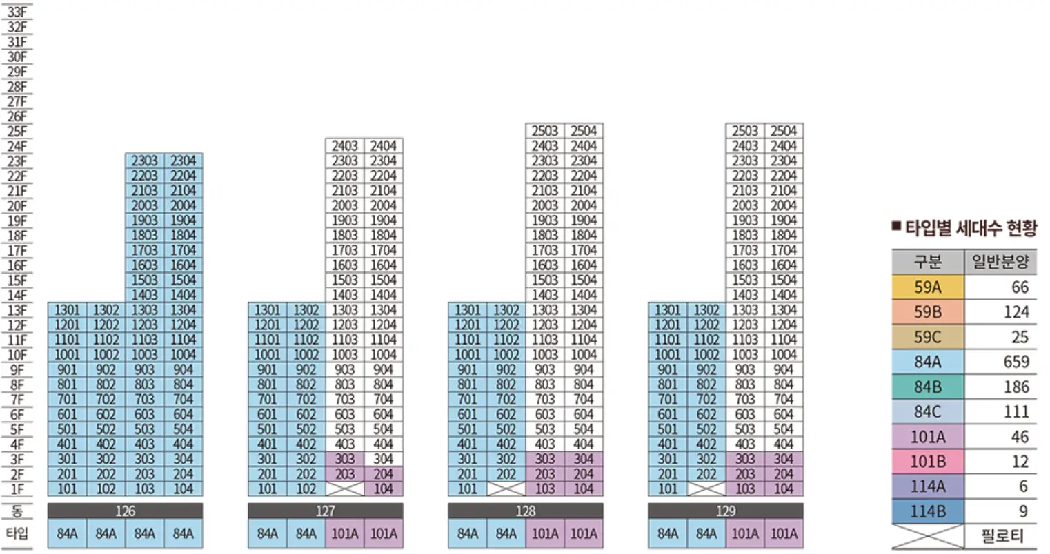 - 규모 : 지하 4층, 지상 33층 29개 동 총 3,064세대 중 일반분양 1,224세대(특별공급 594세대 포함)