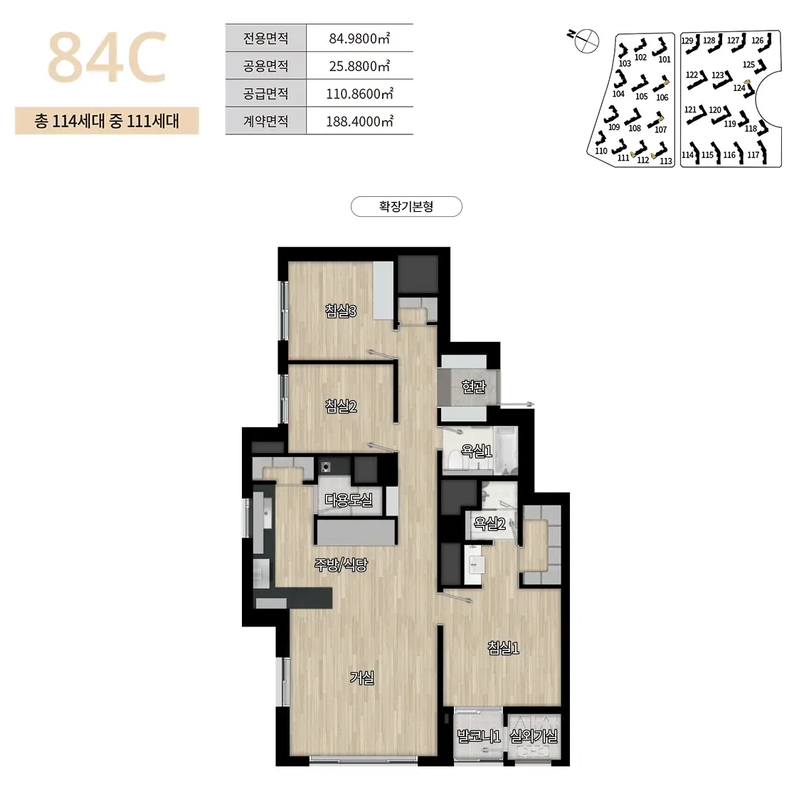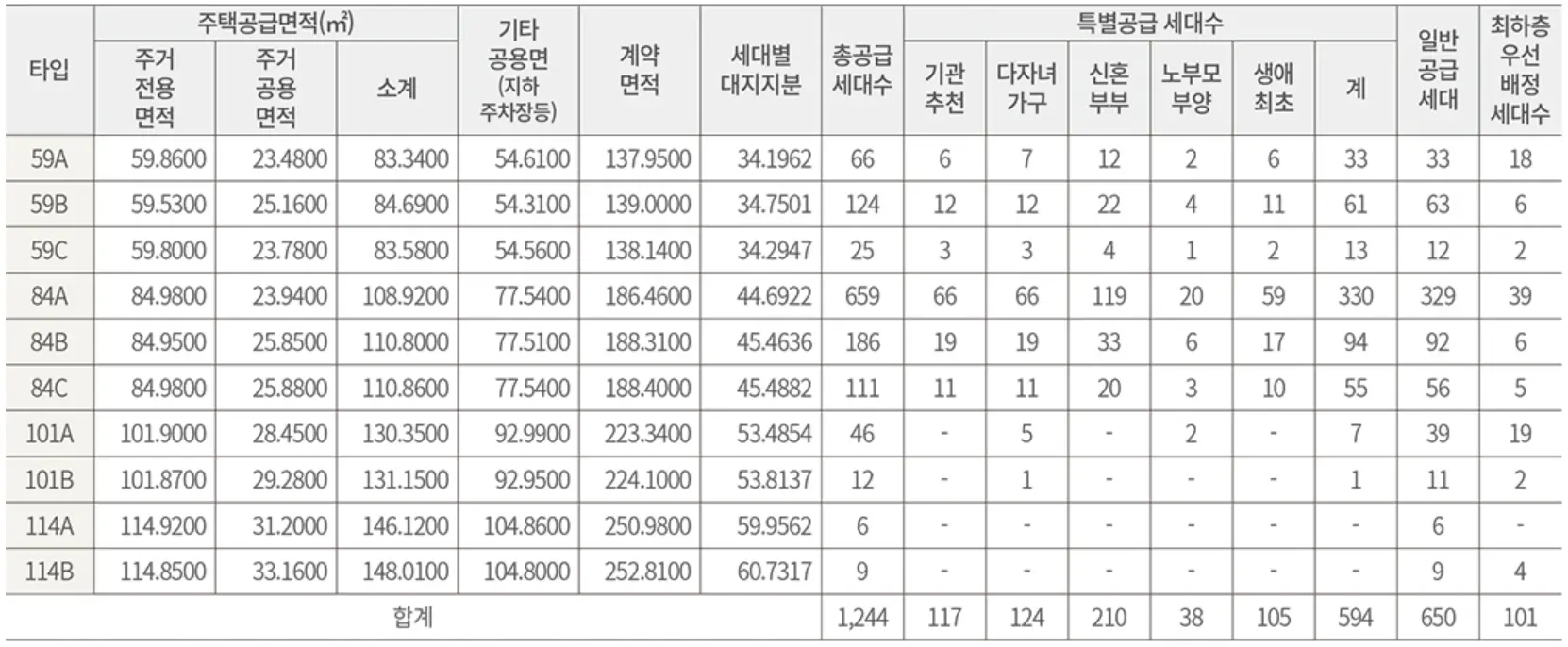 84C타입은 총 114세대로 이중 특별공급 55세대, 일반공급 56세대에 대해 청약을 진행합니다.