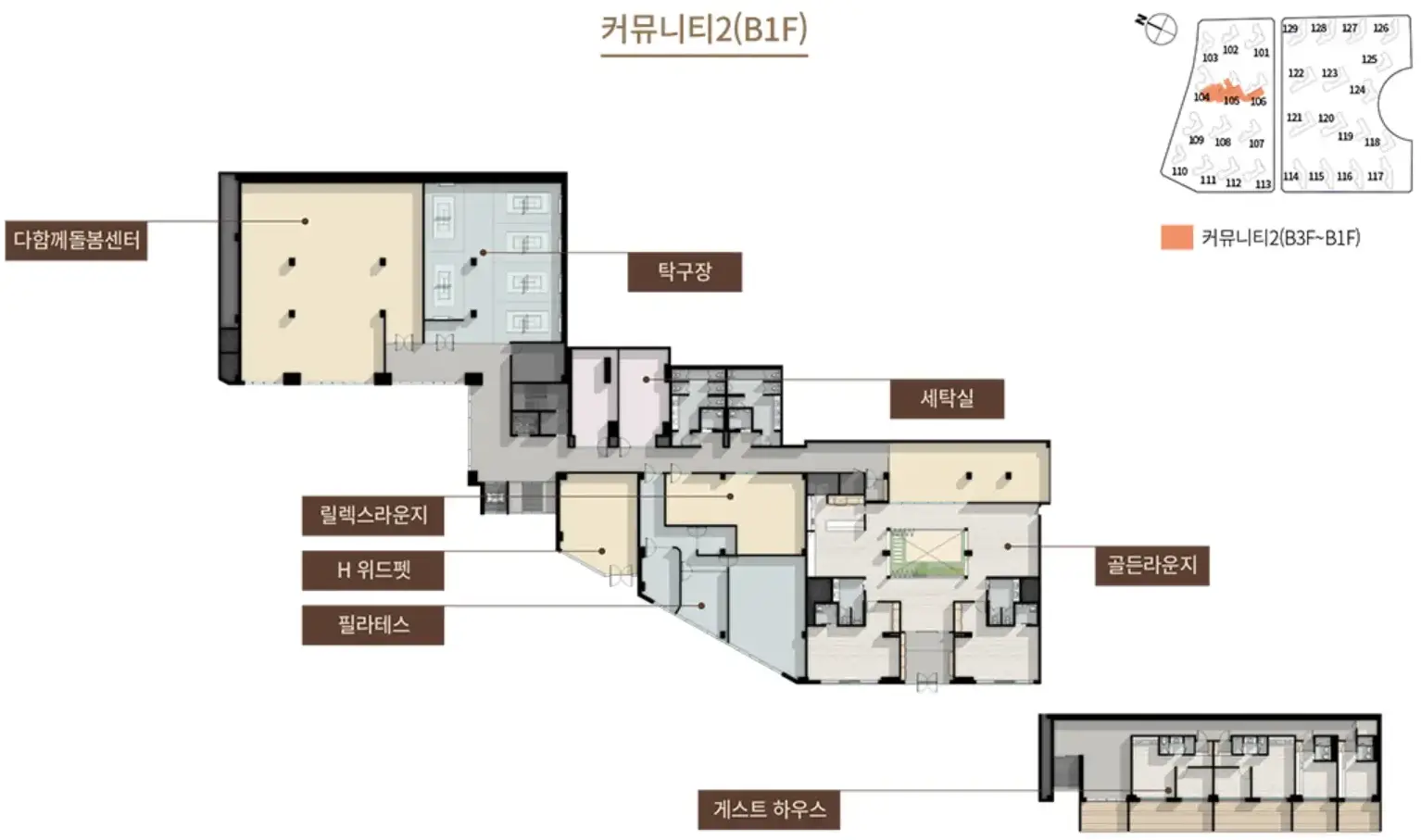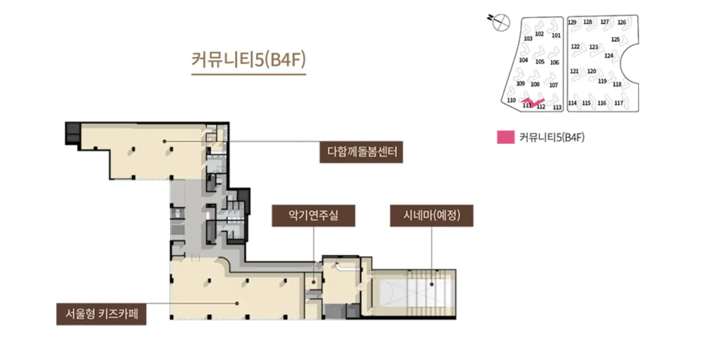 또한 시네마(예정), 스카이라운지, 디에이치 라운지, H 위드펫, 다이닝라운지, 개인독서실, 게스트하우스, 다 함께 돌봄 센터 등이 예정되어 있습니다.