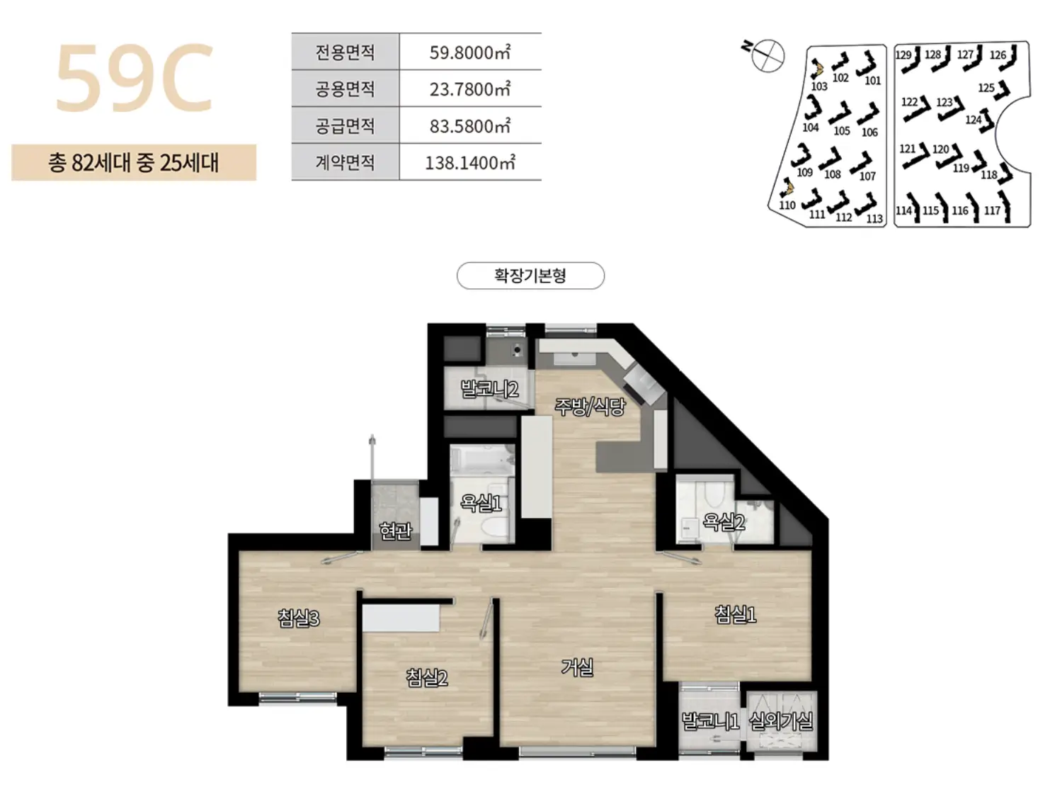 59C타입은 총 82세대로 이중 특별공급 13세대, 일반공급 12세대에 대해 청약을 진행합니다.