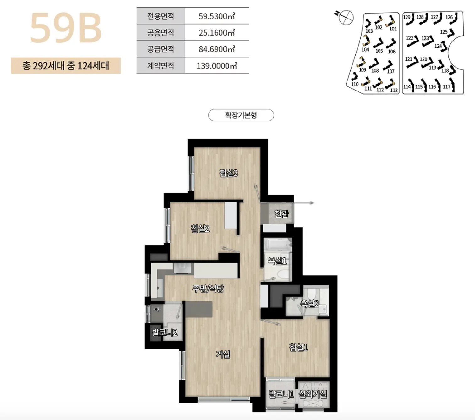 59B타입은 총 292세대로 이중 특별공급 61세대, 일반공급 63세대에 대해 청약을 진행합니다.