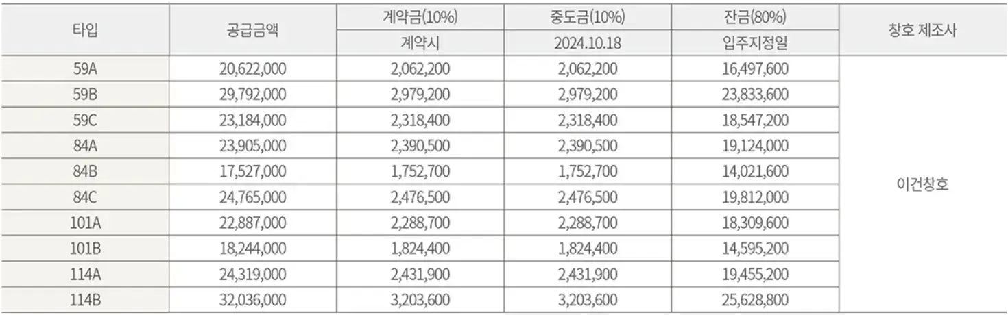 | 타입 | 분양가 | 발코니 확장 |