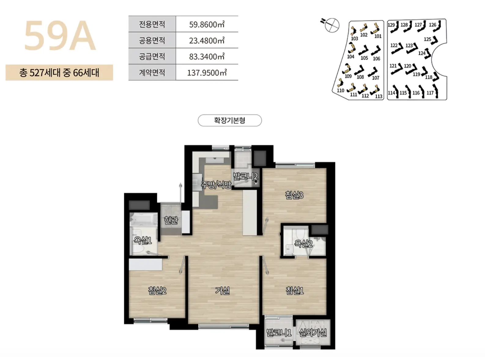 59A타입은 총 527세대로 이중 특별공급 33세대, 일반공급 33세대에 대해 청약을 진행합니다.