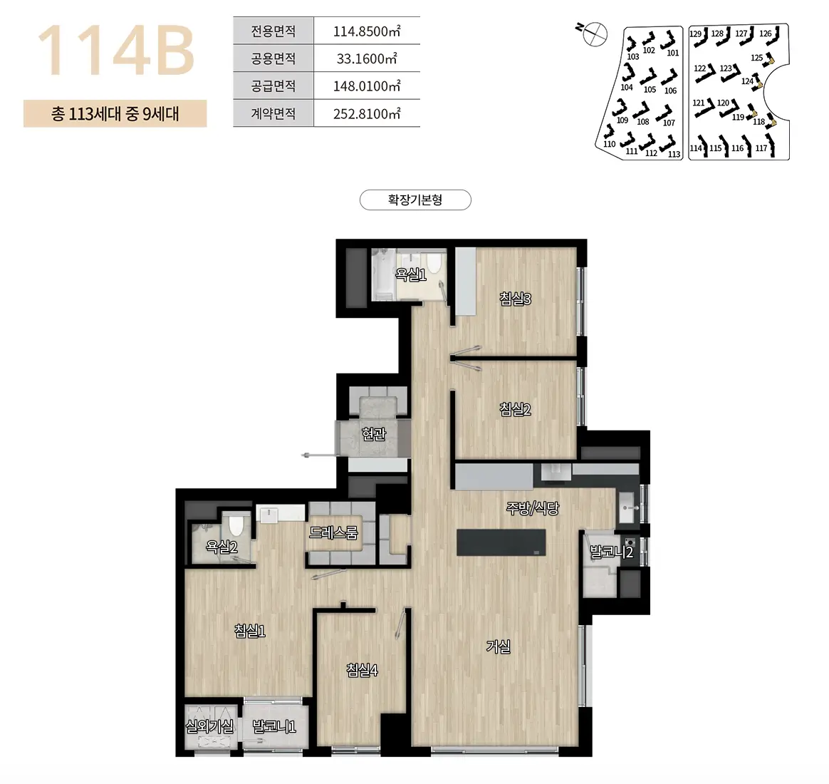 114B타입은 총 113세대로 이중 일반공급 9세대에 대해 청약을 진행합니다.