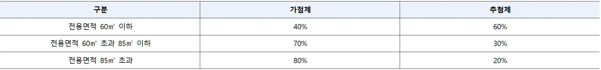 | 민영 / 민간택지 | 서울시 2년이상 거주자 | 서울시 2년미만 및 인천, 경기도 거주자 |