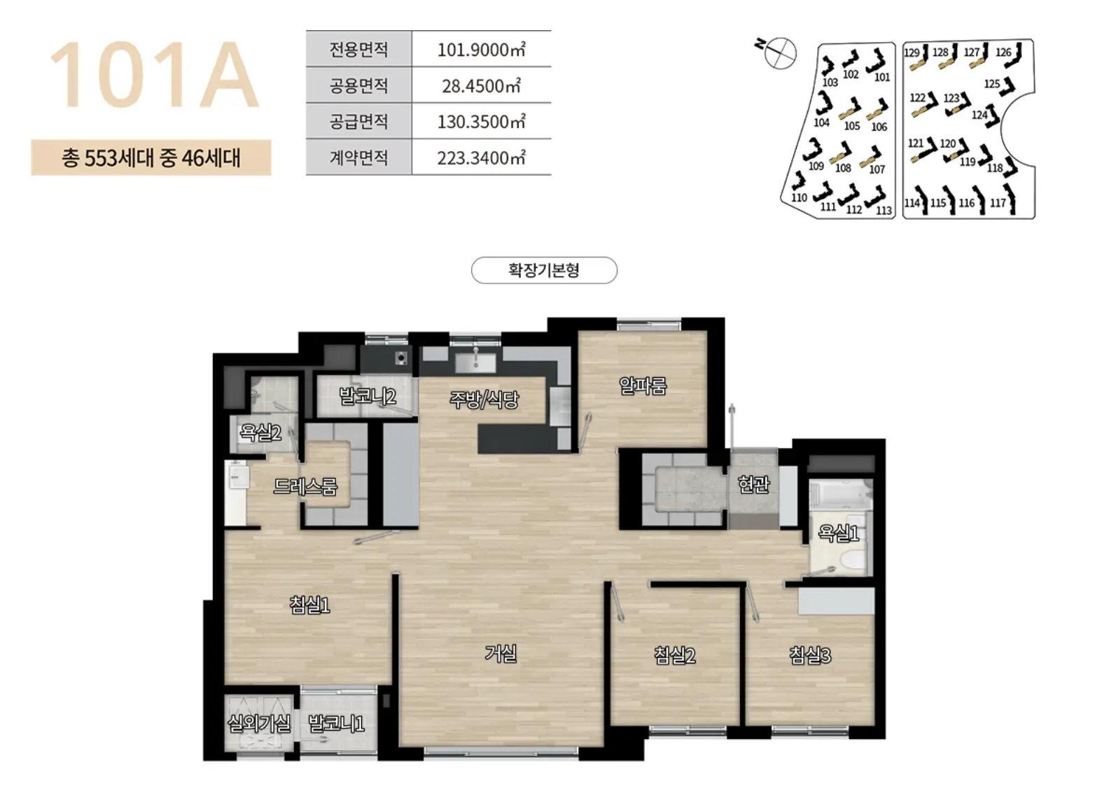 101A타입은 총 553세대로 이중 특별공급 7세대, 일반공급 39세대에 대해 청약을 진행합니다.