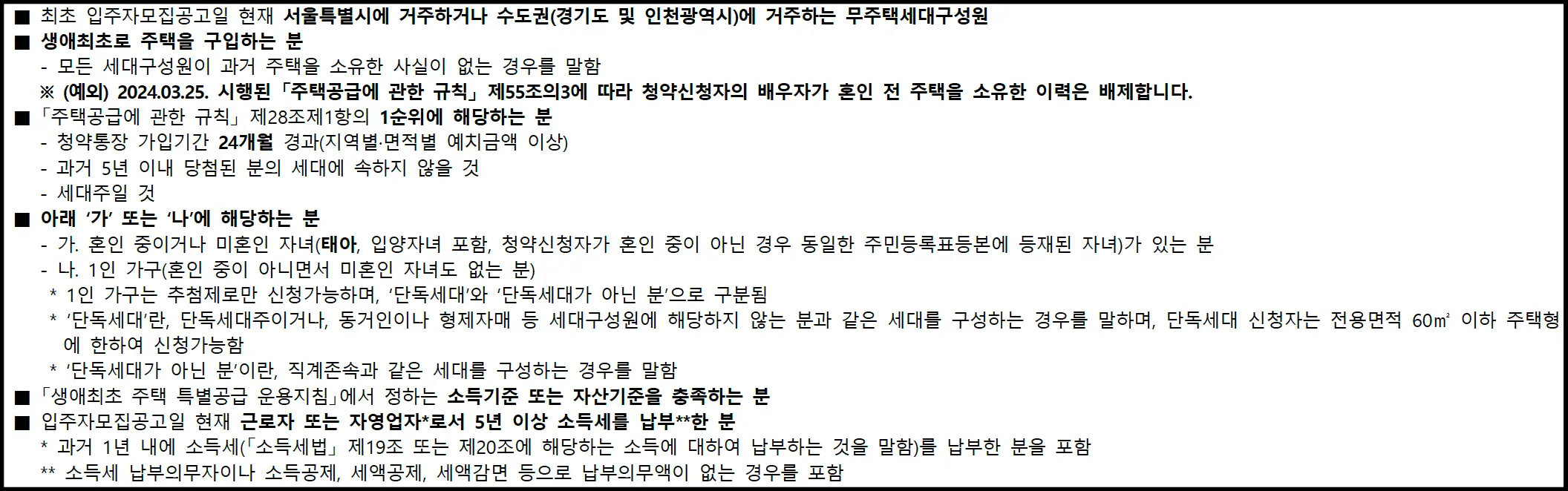 - 과거 5년 이내 당첨사실이 없는 세대여야 합니다.