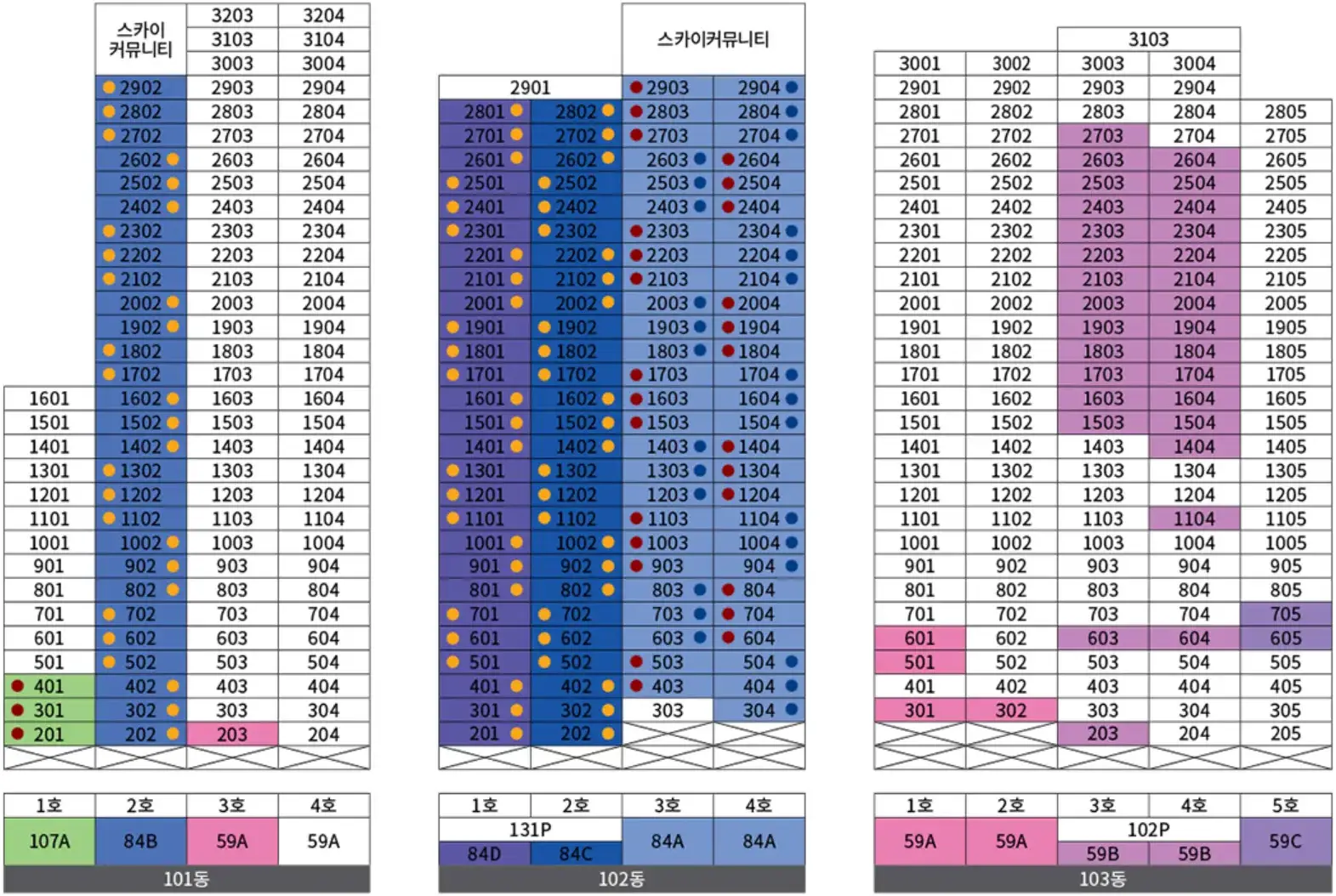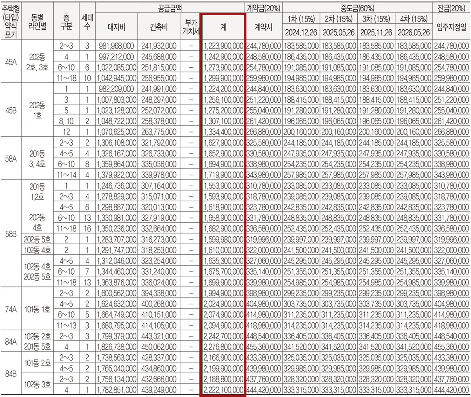 | 84A | 22억4,270만원~22억7,680만원 | 1,742.1만원 |