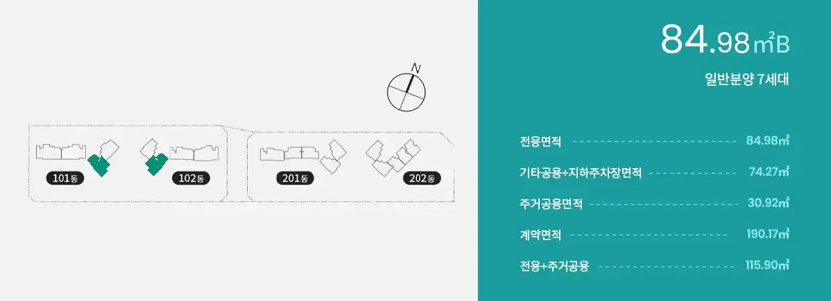 84B타입은 총 34세대이며 이중 특별공급은 2세대, 일반공급은 5세대, 총 7세대를 분양할 예정입니다.
