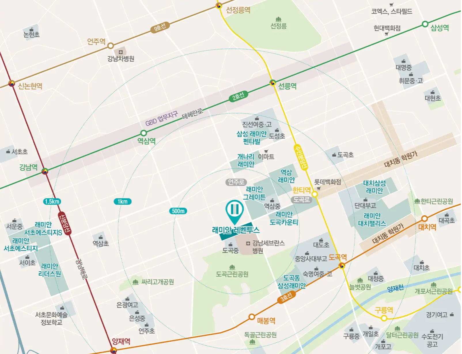 7,000여 세대 래미안 브랜드 타운을 형성하고 있는 강남 대치학원가와 지하철 역시권을 모두 갖춘 래미안 레벤투스는 도곡동 일대에서 오랜만에 들어서는 래미안 브랜드라는 점에서 입주 후 시너지 효과가 대단할 것으로 보입니다.