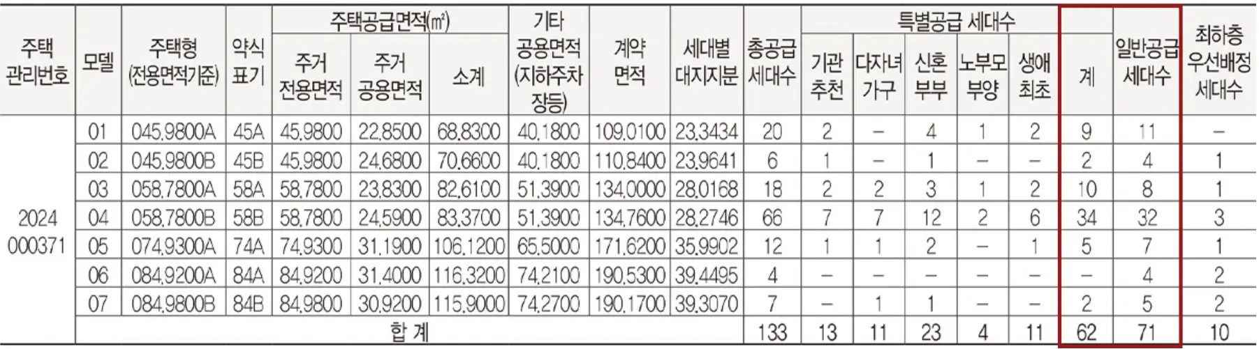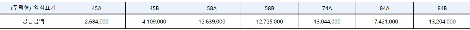 | 타입 | 특별공급 | 일반공급 |