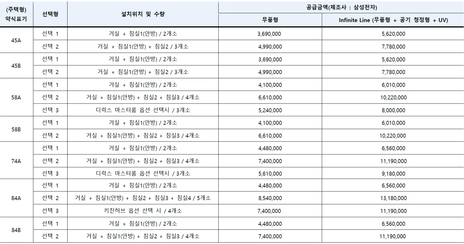 | 타입 | 선택 | 무풍형 | 공기청정+UV+무풍 |