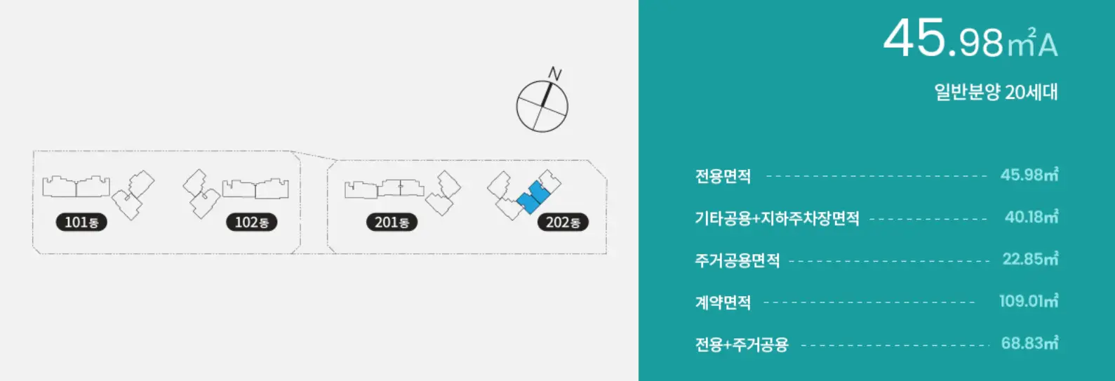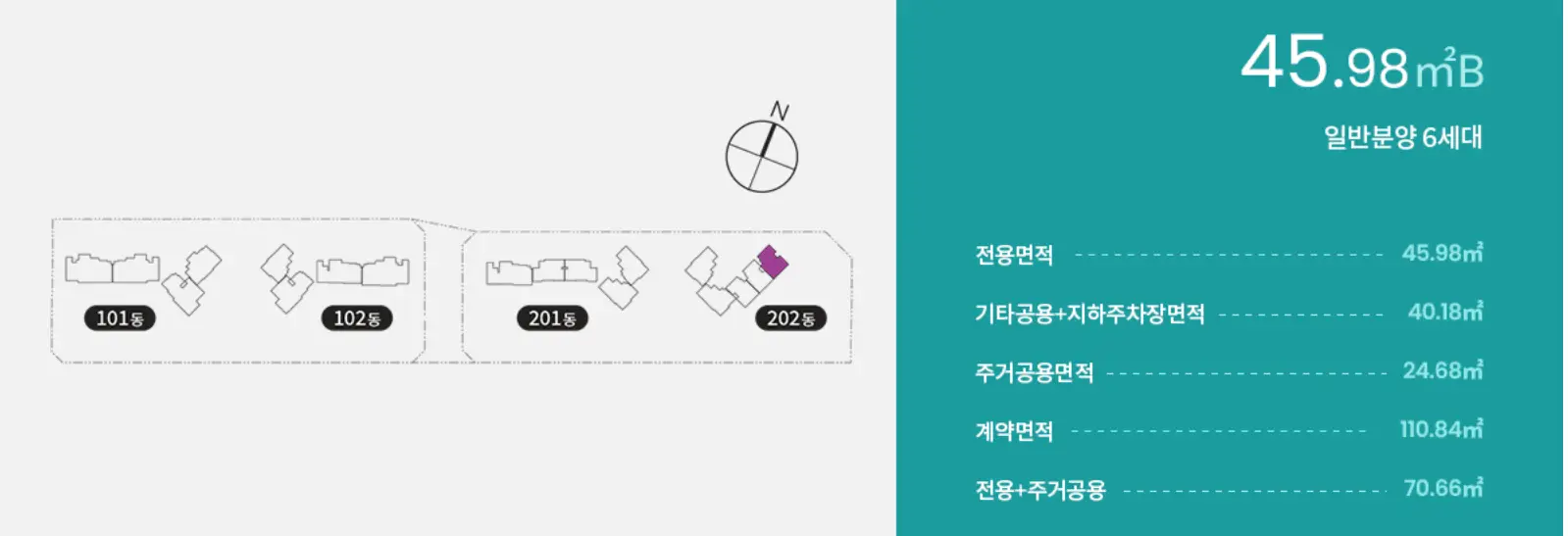 45B타입은 총 18세대이며 이중 특별공급은 2세대, 일반공급은 4세대, 총 6세대를 분양할 예정입니다.