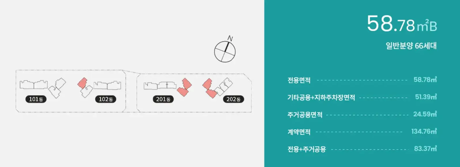 59B타입은 총 84세대이며 이중 특별공급은 34세대, 일반공급은 32세대, 총 66세대를 분양할 예정입니다.