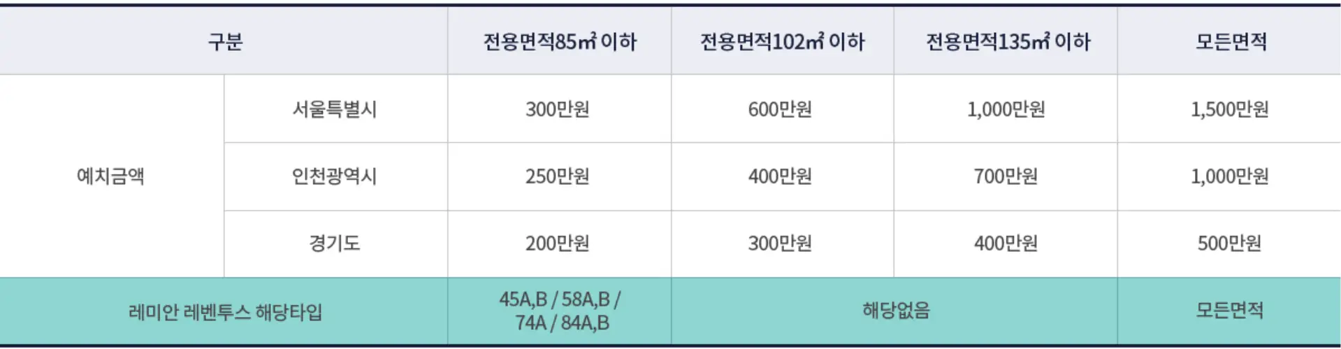 - 청약예금 : 청약예금 12개월 경과, 지역별·면적별 예치금액 이상