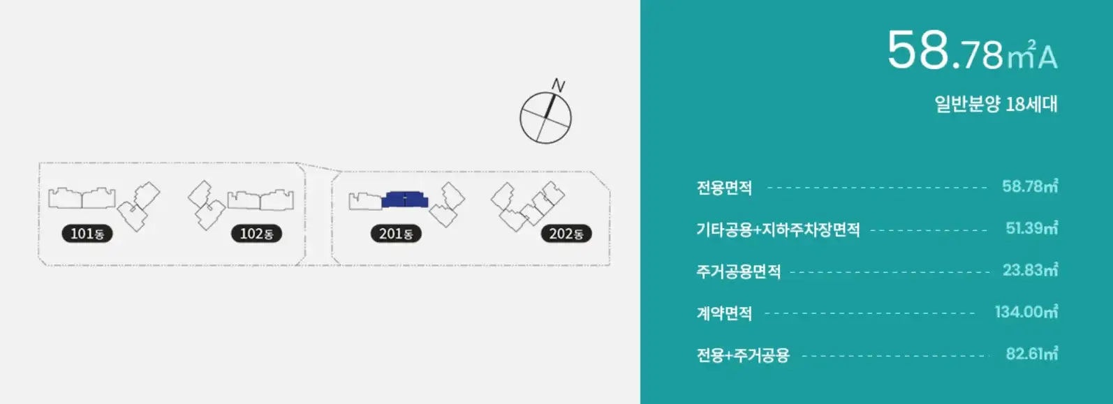 59A타입은 총 34세대이며 이중 특별공급은 10세대, 일반공급은 8세대, 총 18세대를 분양할 예정입니다.