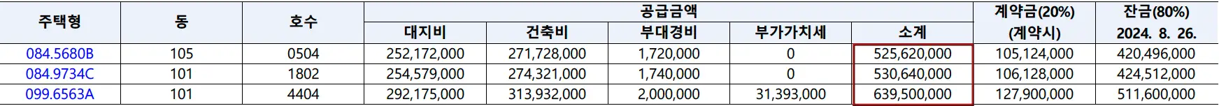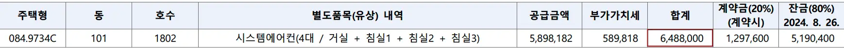 | 84C | 5억3,064만원 | 657만원 | 648.8만원(에어컨) |